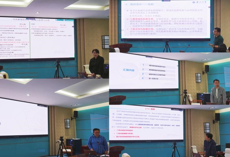 会上,各团队负责人分别汇报了《二氧化碳地质封存与监测原理与应用》《绿色低碳发展与治理》《全球气候治理与合作教程》等教材编写进展,以及“碳储科学与工程”“绿色低碳发展与治理”交叉学科课程设置情况。