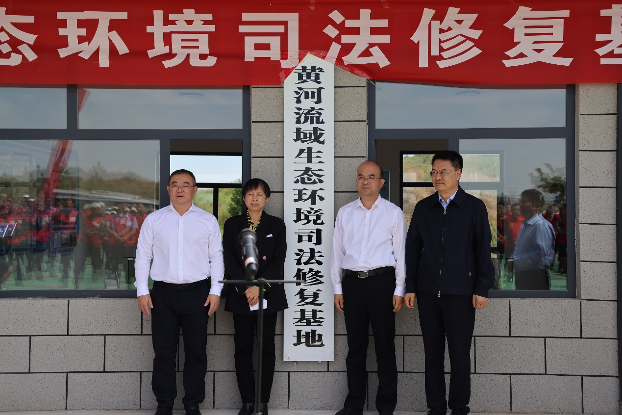 米劲、常江、吴小鹏、苗玉祥共同为黄河流域生态环节司法修复基地揭牌。
