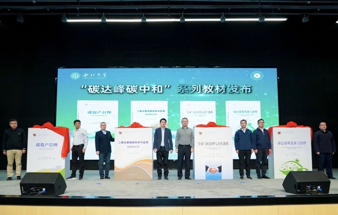 公司联合隆基绿能、西安中碳等企业编写了碳达峰碳中和系列教材。活动上,校企主编共同为《二氧化碳地质封存与监测》《绿色低碳发展与治理》《全球气候治理与合作教程》《碳资产管理》等首批教材揭幕。