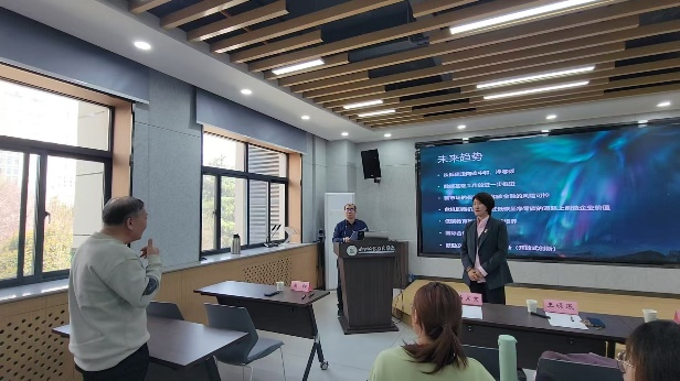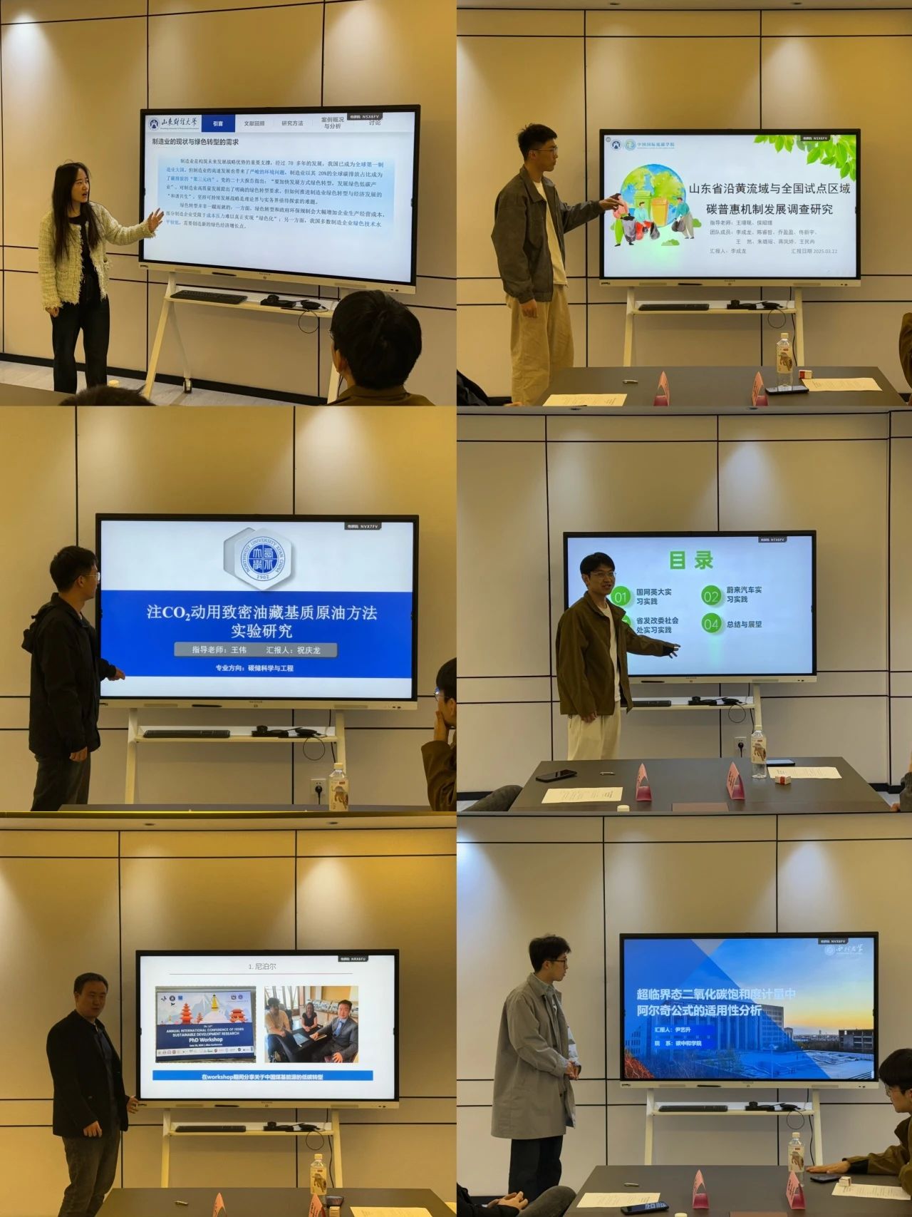 当天下午,山东财经大学中国国际低碳学院与公司员工开展研究生学术沙龙活动。双方员工代表分别就“制造企业实现绿色转型研究热点与展望”“基于山东省沿黄流域与全国试点区域碳普惠机制发展调查研究”“注CO2动用致密油藏基质原油方法实验研究”“碳中和学习心得感悟——从专业实习实践角度谈”“2024中国碳中和事业的见闻与体会”“超临界态二氧化碳饱和度计量中阿尔奇公式的适用性分析”等主题进行交流分享。