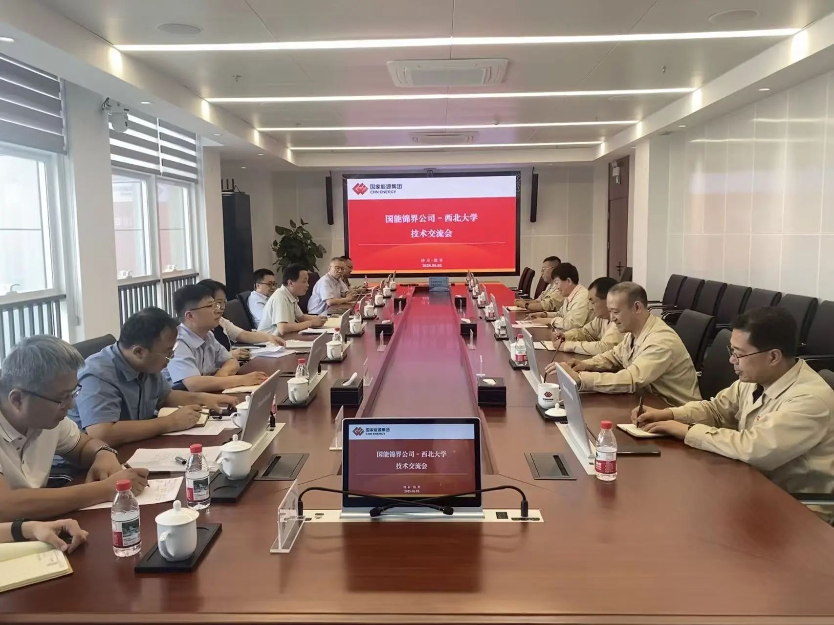 陈富林一行还走访了国能榆林化工有限公司、国能锦界能源有限责任公司,就固废综合利用,盐穴储氢,数字化及网络安全,矿井水、脱硫废水治理等企业实际需求方面进行了讨论交流,针对企业面临的技术难题提出了解决方案,为下一步推动重点项目落地与平台建设达成合作意向。