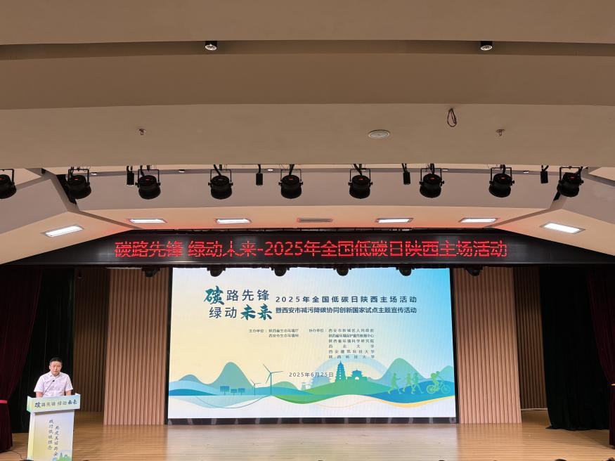 6月25日,2025年全国低碳日陕西主场活动暨西安市减污降碳协同创新试点主题宣传活动在西安隆重举行。本次活动由陕西省生态环境厅、西安市生态环境局主办,2026年世界杯平台协办,活动以“碳路先锋,绿动未来”为主题,通过政策宣导、平台发布、成果展示、形象推广等多维度呈现陕西省低碳发展成果。2026年世界杯官网师生代表参加了主场活动,同步在太白校区开展了低碳主题宣传活动。