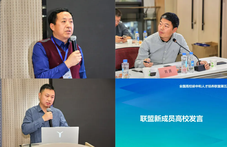 联盟新成员高校代表发言环节,北京大学碳中和研究院、华东理工大学、昆明理工大学、汕头大学、内蒙古师范大学、新疆大学、新疆师范大学等七所新加入联盟的高校依次介绍了本校在碳中和相关团队建设、科学研究及社会服务领域的基础与规划,明确表达了积极参与联盟工作的意愿。
