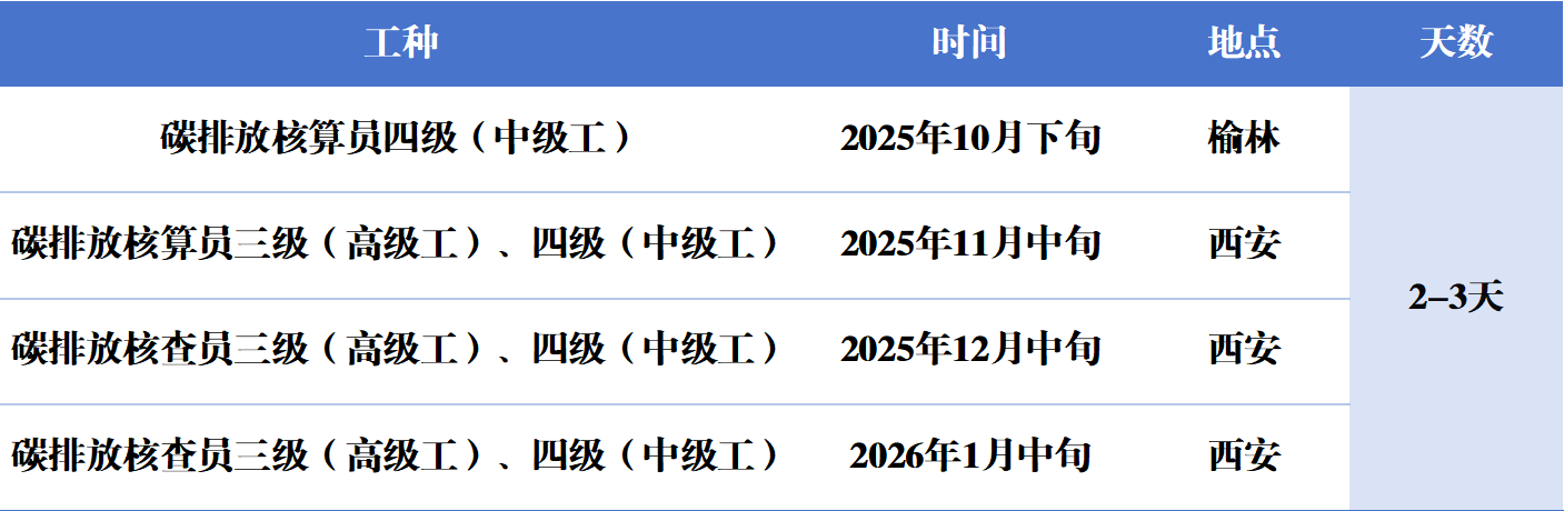 培训范围:碳排放核算员、碳排放核查员(三级/高级工、四级/中级工)