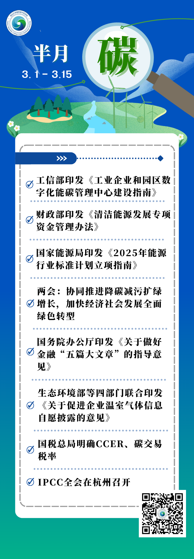 政府工作报告提出今年绿色低碳发展的预期目标:单位国内生产总值能耗降低3%左右,生态环境质量持续改善。并明确主要工作任务,要协同推进降碳减污扩绿增长,加快经济社会发展全面绿色转型。进一步深化生态文明体制改革,统筹产业结构调整、污染治理、生态保护、应对气候变化,推进生态优先、节约集约、绿色低碳发展。