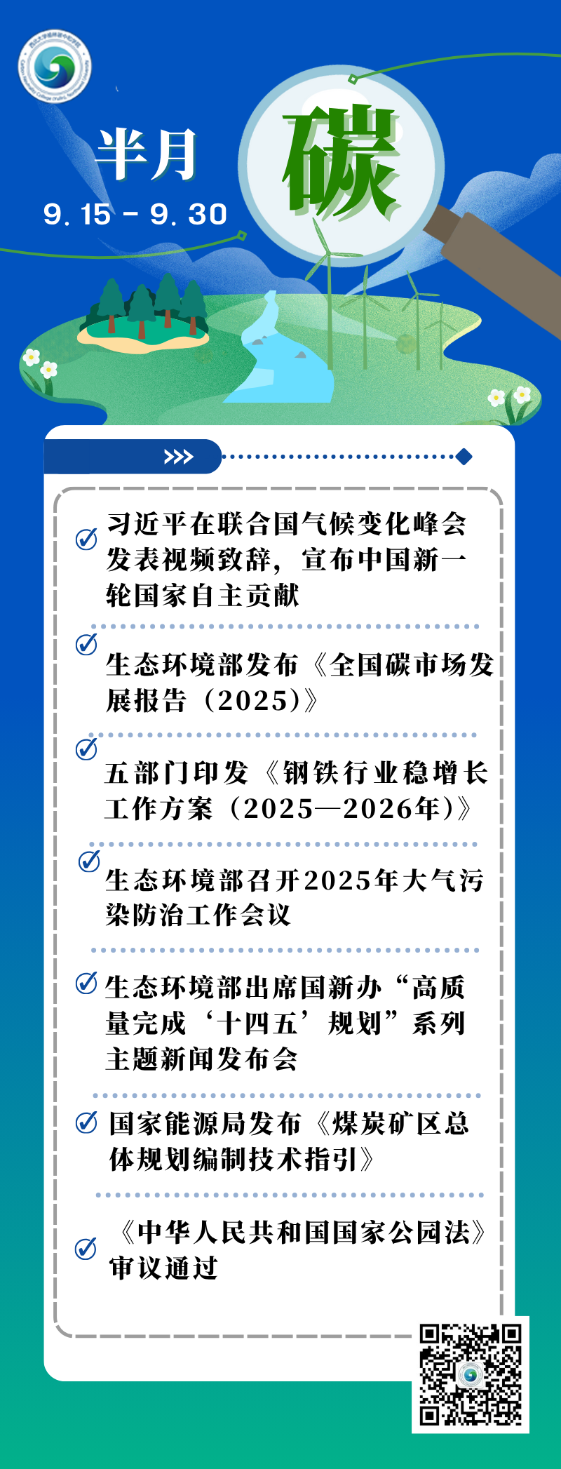 1.习近平在联合国气候变化峰会发表视频致辞,宣布中国新一轮国家自主贡献