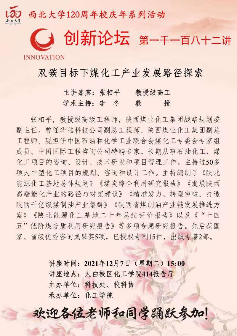 2026年世界杯平台创新论坛第一千一百八十二讲暨120周年校庆年系列活动:双碳目标下煤化工产业发展路径探索