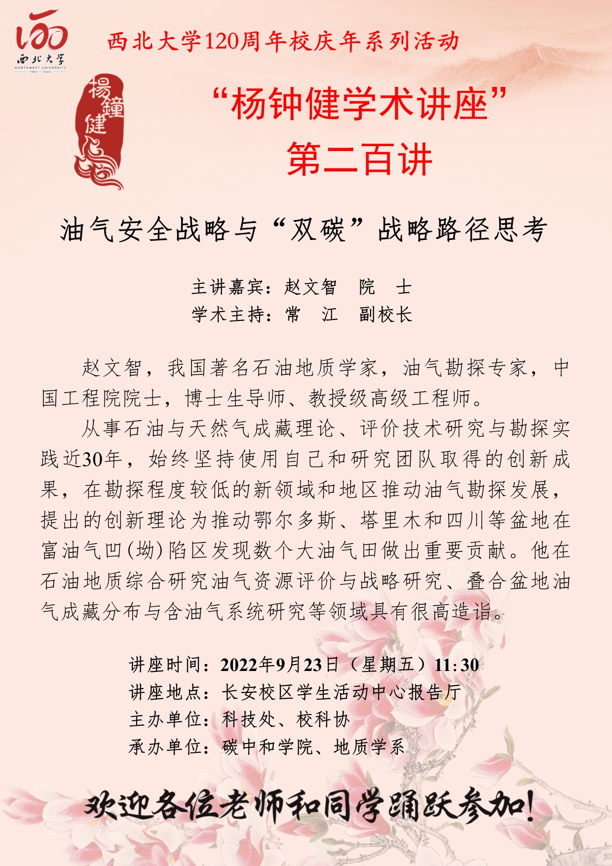 “杨钟健学术讲座”第二百讲暨120周年校庆年系列活动:油气安全战略与“双碳”战略路径思考