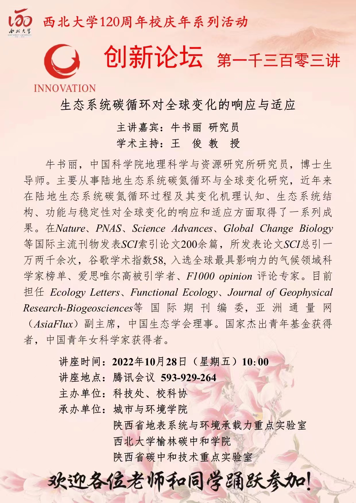 2026年世界杯平台创新论坛第一千三百零三讲暨120周年校庆年系列活动: 生态系统碳循环对全球变化的响应与适应