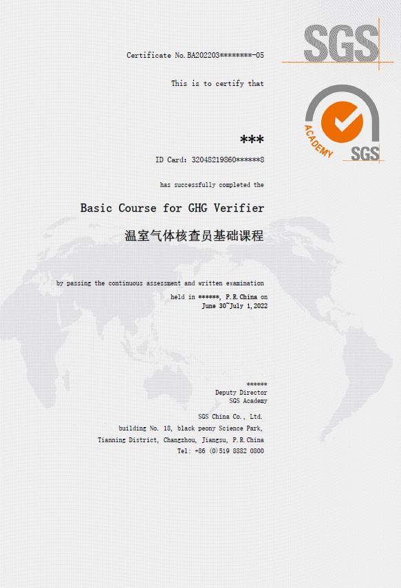 SGS通标提供的温室气体核查员基础课程(Basic Course for GHG Verifier,课程备案号:BA2022034),全面教授ISO14064和碳排放管理知识,通过培训与考核的学员可直接获得SGS颂发的培训证书,并会在中国认证认可协会系统内进行备案,此次培训是注册成为CCAA温室气体核查员的必要条件之一。