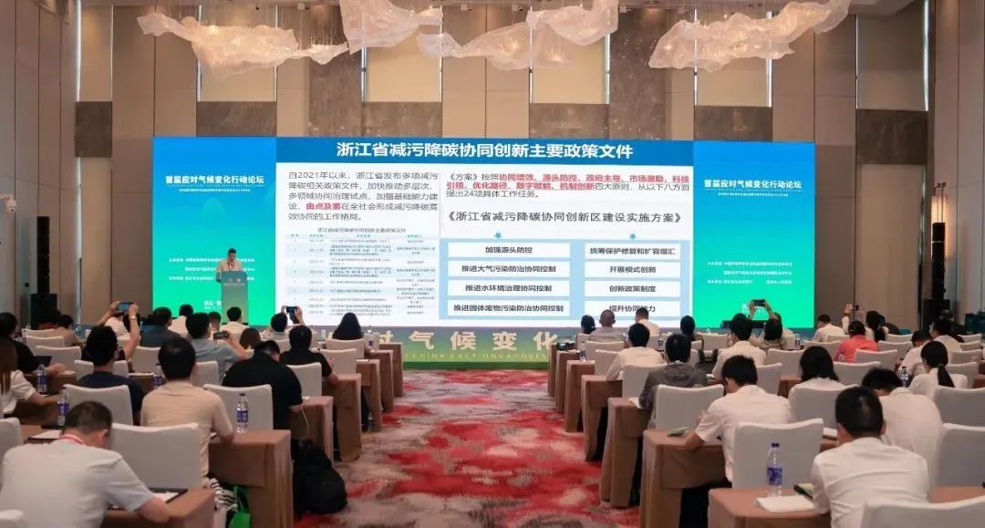 会上,中国气候变化事务特使解振华,生态环境部党组成员、副部长赵英民视频致辞,国家应对气候变化战略研究和国际合作中心主任、中国环境科学学会碳达峰碳中和专业委员会主任委员徐华清主持了开幕式及成果展示与主旨演讲环节。本次论坛以“协同推进降碳、减污、扩绿、增长”为主题,由中国环境科学学会碳达峰碳中和专业委员会、国家应对气候变化战略研究和国际合作中心主办,浙江省生态环境厅、衢州市人民政府承办,论坛邀请中国工程院院士、著名专家学者、浙江省相关政府部门负责同志、产业界和社会组织代表约500余人参会,会议设置主论坛和七个平行分论坛。